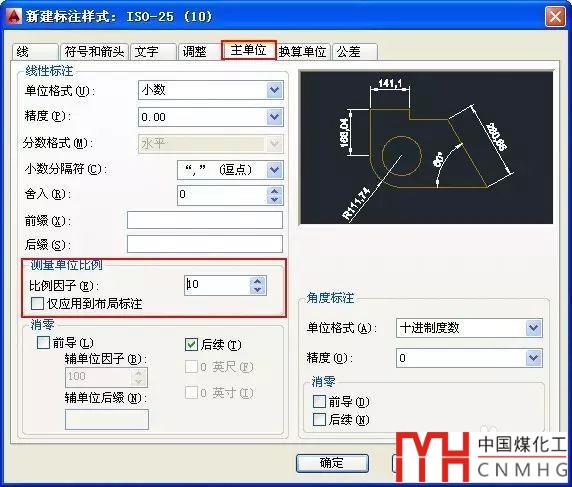 如果遇到兩個標(biāo)注樣式的數(shù)值呈一定的倍數(shù)關(guān)系,就可以打開標(biāo)注樣式對話框,看一下“測量單位比例”設(shè)置是否不同,如下圖所示。