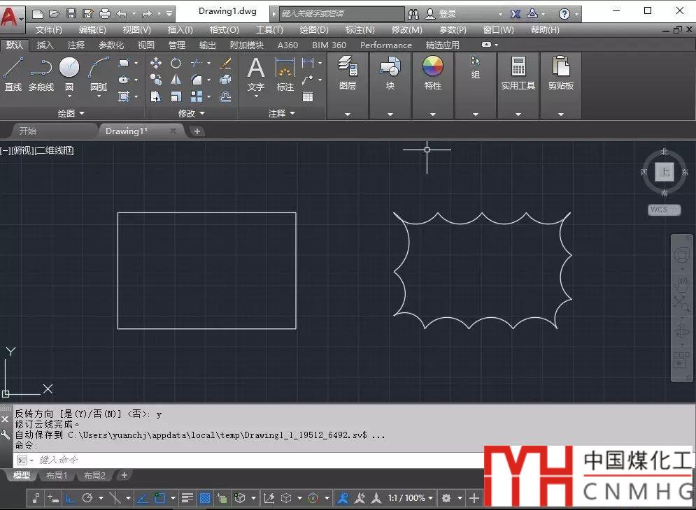 我們可以先繪制一條封閉的多段線,為了方便,可以直接繪制一個(gè)矩形,然后執(zhí)行徒手畫云線命令,出現(xiàn)提示時(shí)直接按空格,軟件會(huì)提示讓選擇對(duì)象,選擇提前繪制好的多段線,就可以生成云線,命令行會(huì)提示是否反轉(zhuǎn)方向,這個(gè)可以反轉(zhuǎn)圓弧的方向,讓圓弧向內(nèi)凹或向外凸,如果云線不滿足要求,可以輸入Y反轉(zhuǎn)方向,如果沒有問題,直接輸入N。