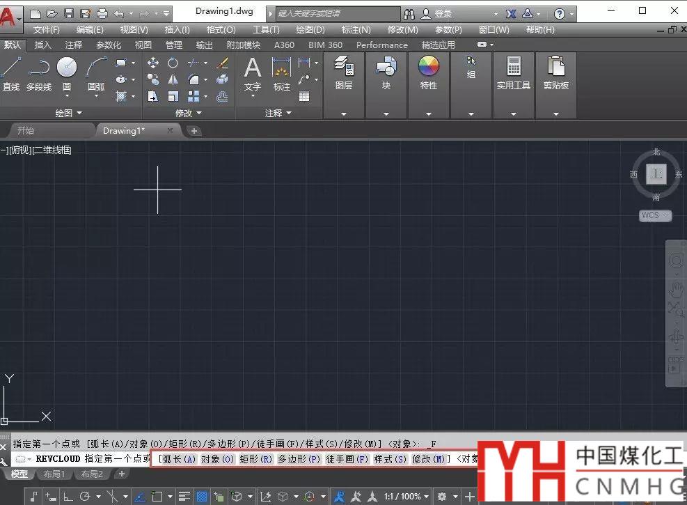 在命令面板中單擊徒手畫修訂云線或者輸入REVCLOUD后回車,執(zhí)行修訂云線命令,軟件會(huì)提示指定云線的第一點(diǎn),并列出了以大堆選項(xiàng),如圖所示。