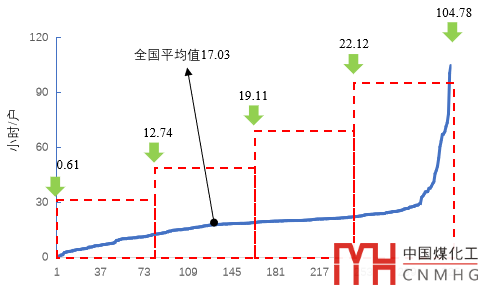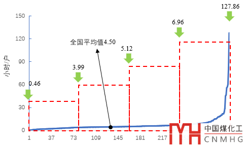 2019年,全國(guó)供電可靠性仍然呈現(xiàn)不均衡態(tài)勢(shì),326個(gè)地級(jí)行政區(qū)供電企業(yè)中,用戶(hù)平均停電時(shí)間可劃分為四個(gè)梯隊(duì)。