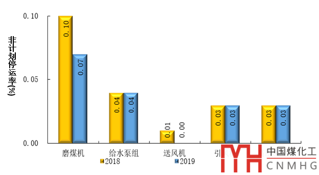 2019年,我國(guó)大型燃煤機(jī)組配套輔助設(shè)備健康水平穩(wěn)定提高。參與統(tǒng)計(jì)的五種輔助設(shè)備即磨煤機(jī)、給水泵組、送風(fēng)機(jī)、引風(fēng)機(jī)、高壓加熱器的運(yùn)行系數(shù)同比分別上升0.86、2.82、1.08、1.08和1.09個(gè)百分點(diǎn)。磨煤機(jī)、送風(fēng)機(jī)非計(jì)劃停運(yùn)率同比下降,給水泵組、引風(fēng)機(jī)、高壓加熱器同比持平。