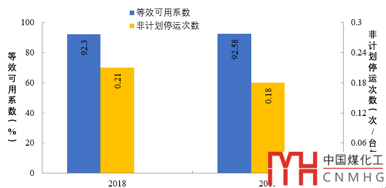 2019年,納入可靠性管理的超臨界及以上燃煤機(jī)組共547臺(tái)。平均等效可用系數(shù)92.8%,同比增長(zhǎng)0.12個(gè)百分點(diǎn),非計(jì)劃停運(yùn)0.48次/臺(tái)年,同比降低0.33次/臺(tái)年。