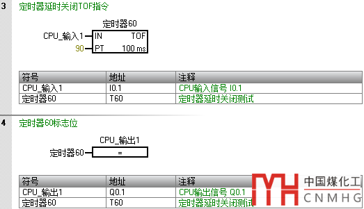 代碼段3中,當(dāng)CPU_輸入1(I0.1)從0變?yōu)?時(shí),定時(shí)器60使能(Enabled),此時(shí)標(biāo)志位被置1(TRUE);