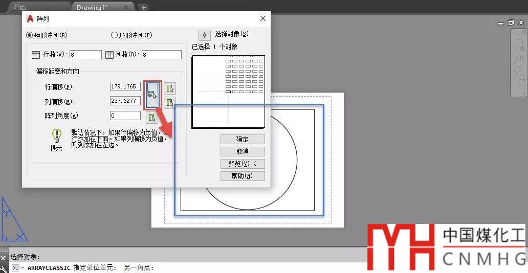 單擊行偏移和列偏移后面的大按鈕,在圖中拾取一個比視口稍大的方框,如圖所示。