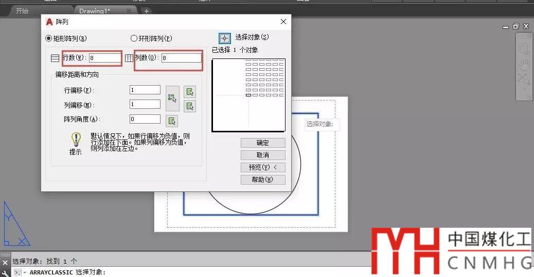 單擊選擇視口,執(zhí)行陣列命令,打開陣列對話框,將數(shù)量設(shè)置成8X8,如圖所示。