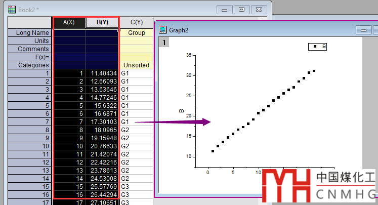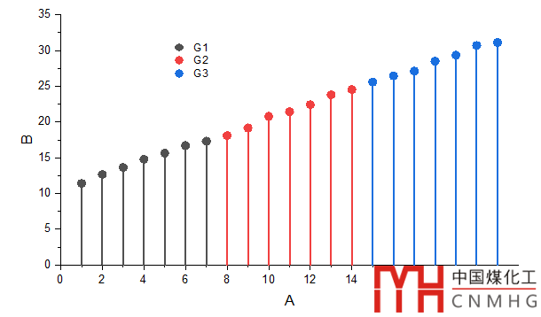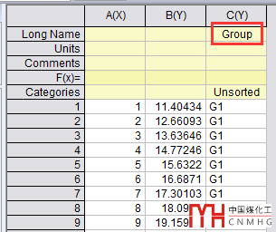 數(shù)據(jù)格式就是最簡單的XY類型數(shù)據(jù),對于例圖中使用了分組填色,我們可以添加一個輔助列,來表示每個散點對應(yīng)的分組信息。