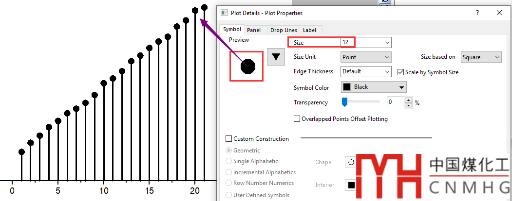 切換到Symbol頁面,設(shè)置散點的形狀、大小。