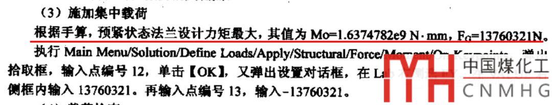 由于模型采用的是軸對稱。采用的施加方式,是先計算出最大設計力矩Mo。然后計算螺栓孔中心圓到墊片中心圓距離Lg,然后Fo=Mo/Lg,求得施加的集中力。
