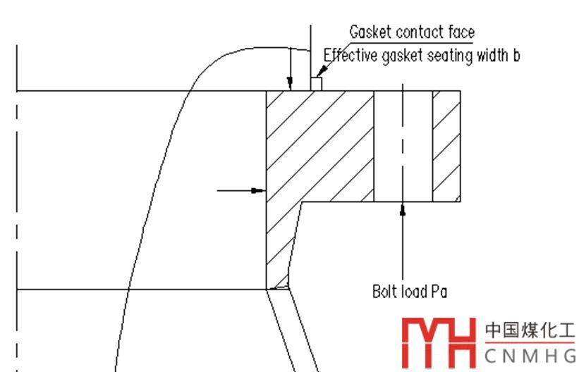 內壓施加在內壁以及內壁到墊片的端面,墊片處施加Fp=6.28DgbmP,螺栓面積處施加
