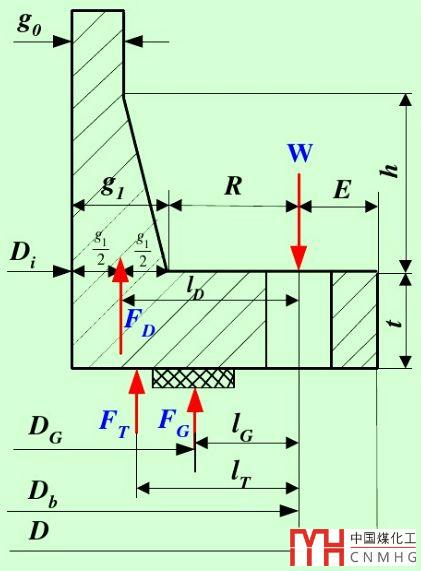 4.先計算法蘭A的螺栓力Mo1,以及螺栓中心圓到墊片作用中心圓Dg的距離Lg1。Wp=Mo/Lg