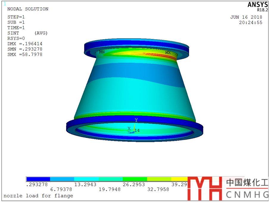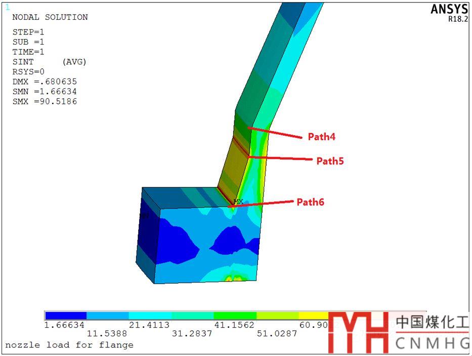 然后將Mo施加在法蘭上,計算其法蘭在設計溫度下的應力。
