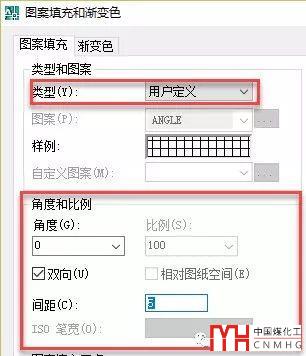 用戶定義的填充可以設(shè)置成單向(平行線)、雙向(方格),可以設(shè)置間距和角度,如下圖所示。