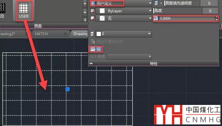 普通的填充圖案只能設(shè)置比例,我們也不太了解每個(gè)單元的實(shí)際尺寸,有時(shí)我們需要在區(qū)域內(nèi)按指定的距離或?qū)挾忍畛渚€或方格,這時(shí)可以使用用戶定義的填充。