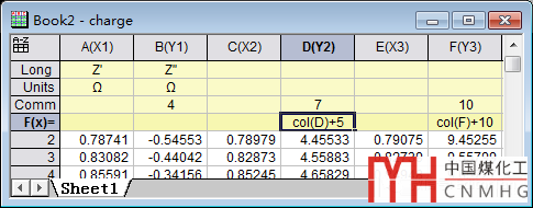 就是利用F(x)函數(shù)(2018版)或set column values(8.5版)將每一組EIS的Z''列數(shù)據(jù)追加一個(gè)數(shù),第一組追加5,第二組追加10,第三組追加15,……等差追加。