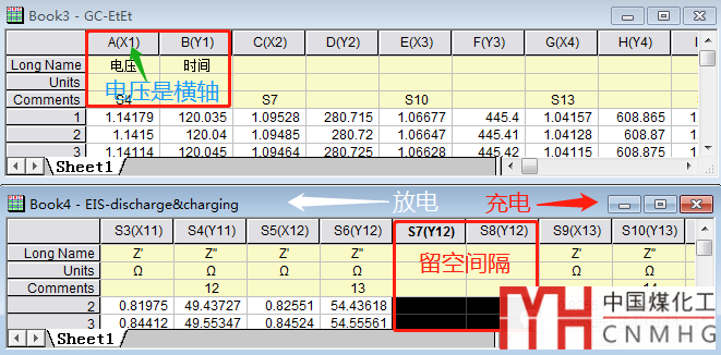 (1)對(duì)于雙圖的EIS表,我們?cè)诘炔钤黾用恳唤MEIS時(shí),在留空列前后兩組EIS的Z''累加跨度要大一點(diǎn),這直接關(guān)系到EIS圖中充放電兩組阻抗曲線之間的間隔;