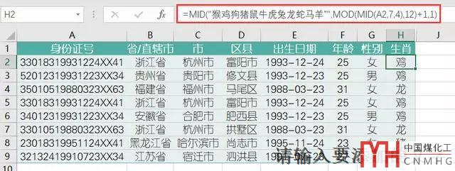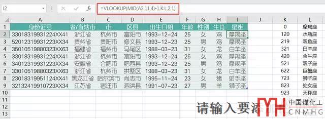 用Excel從身份證號提取地區(qū),生日,性別,年齡,生肖,星座等