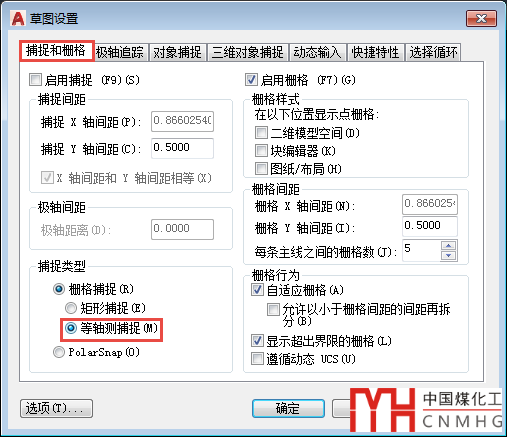 等軸側(cè)捕捉的設(shè)置方法如下: