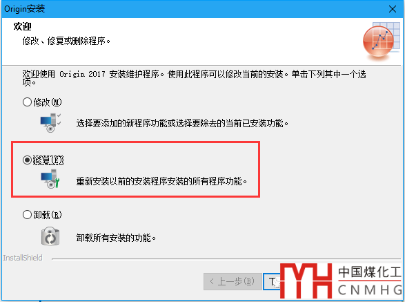 如果已經(jīng)安裝了OriginPro SR0 英文版(或者 OriginPro SR0 中文beta版)并且已經(jīng)激活,可以不用卸載,直接運行SR1中文學(xué)習(xí)版的安裝程序,選擇"Repair/修復(fù)"選項,將 SR0 修復(fù)為 SR1,然后啟動程序,自動激活。