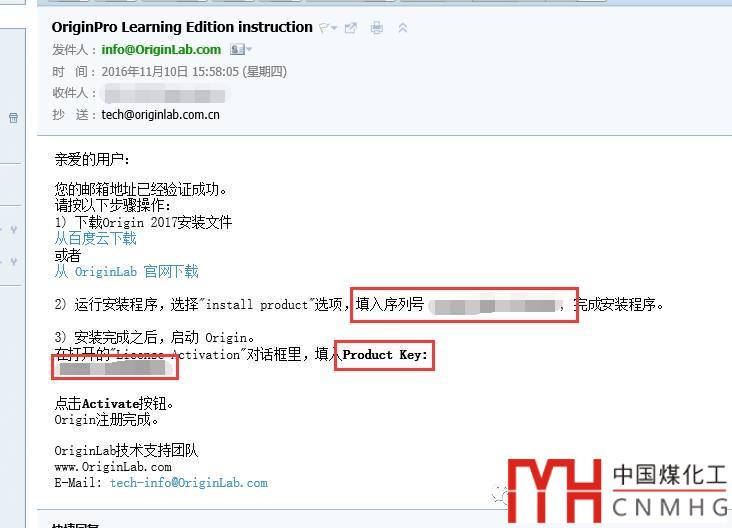 激活郵箱截圖,比2016版好的地方在于,直接給了Key,不需要在線生成。