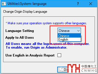OriginPro 2017 SR1 學(xué)習(xí)版的語言默認(rèn)與操作系統(tǒng)語言一致,也可以實現(xiàn)中英文切換。