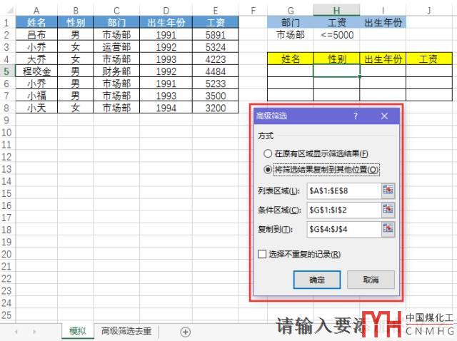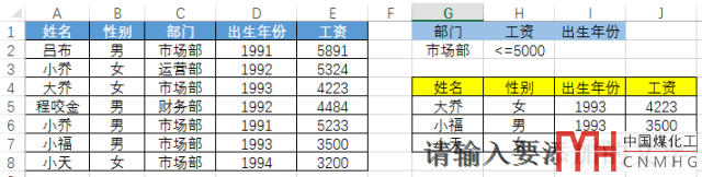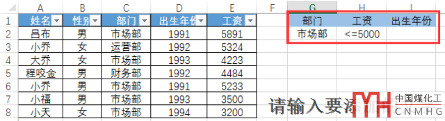 普通方法:先在部門字段中篩選中市場(chǎng)部的信息,再?gòu)墓べY字段中篩選小于等于5000的結(jié)果,然后再篩選出來(lái)的結(jié)果復(fù)制粘貼至新工作表,然后將無(wú)用的字段信息進(jìn)行刪除