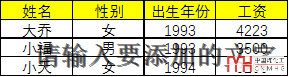 2、列出你需要查找的信息字段,例如想找出姓名、性別、出生看份、工資