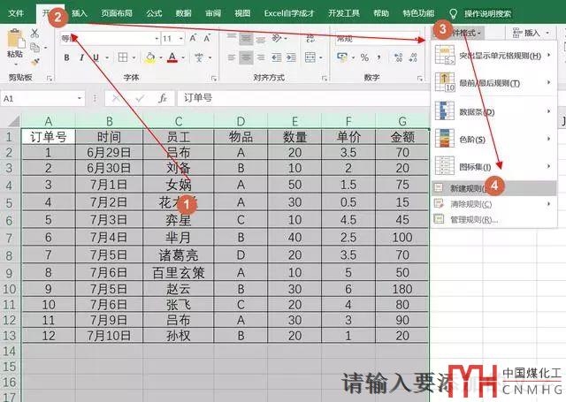 選中A:G整列的數(shù)據(jù)區(qū)域,點擊開始選項卡,點擊條件格式,點擊新建規(guī)則