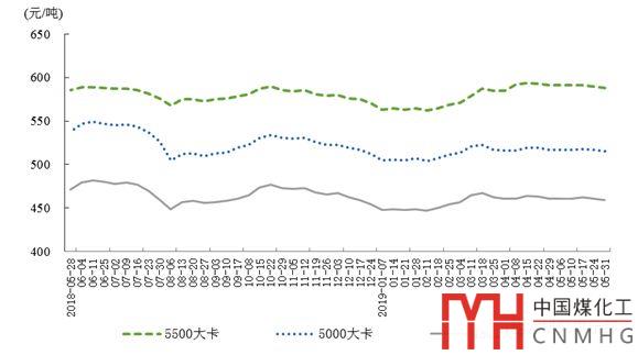 5月31日,秦皇島5500大卡煤炭綜合交易價(jià)格為每噸588元,5000大卡為每噸515元,4500大卡為每噸459元,比4月29日分別下跌3元、2元和2元。