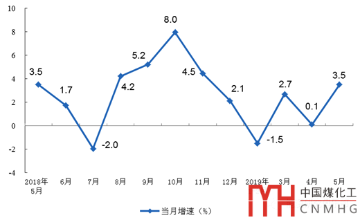 5月份,規(guī)模以上工業(yè)原煤、原油和天然氣生產(chǎn)加快,電力生產(chǎn)放緩。1~5月份,全國全社會用電量27993億千瓦時(shí),同比增長4.9%,增速比上年同期回落4.8個(gè)百分點(diǎn)。1~5月份,全國規(guī)模以上電廠火電發(fā)電量20409億千瓦時(shí),同比增長0.2%,增速比上年同期回落7.9個(gè)百分點(diǎn)。全國火電設(shè)備平均利用小時(shí)為1728小時(shí)(其中,燃煤發(fā)電和燃?xì)獍l(fā)電設(shè)備平均利用小時(shí)分別為1783和971小時(shí)),比上年同期降低48小時(shí)。