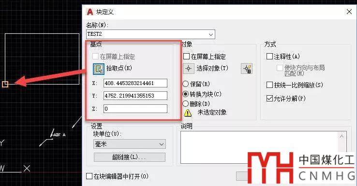 在定義圖塊的時候需要設置一個基點,也就是圖塊插入時候的插入點,如下圖所示。