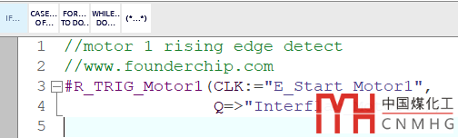 第二種方式的上升沿檢測,則需要判斷背景數據塊中的靜態(tài)變量來啟動電機,代碼如下: