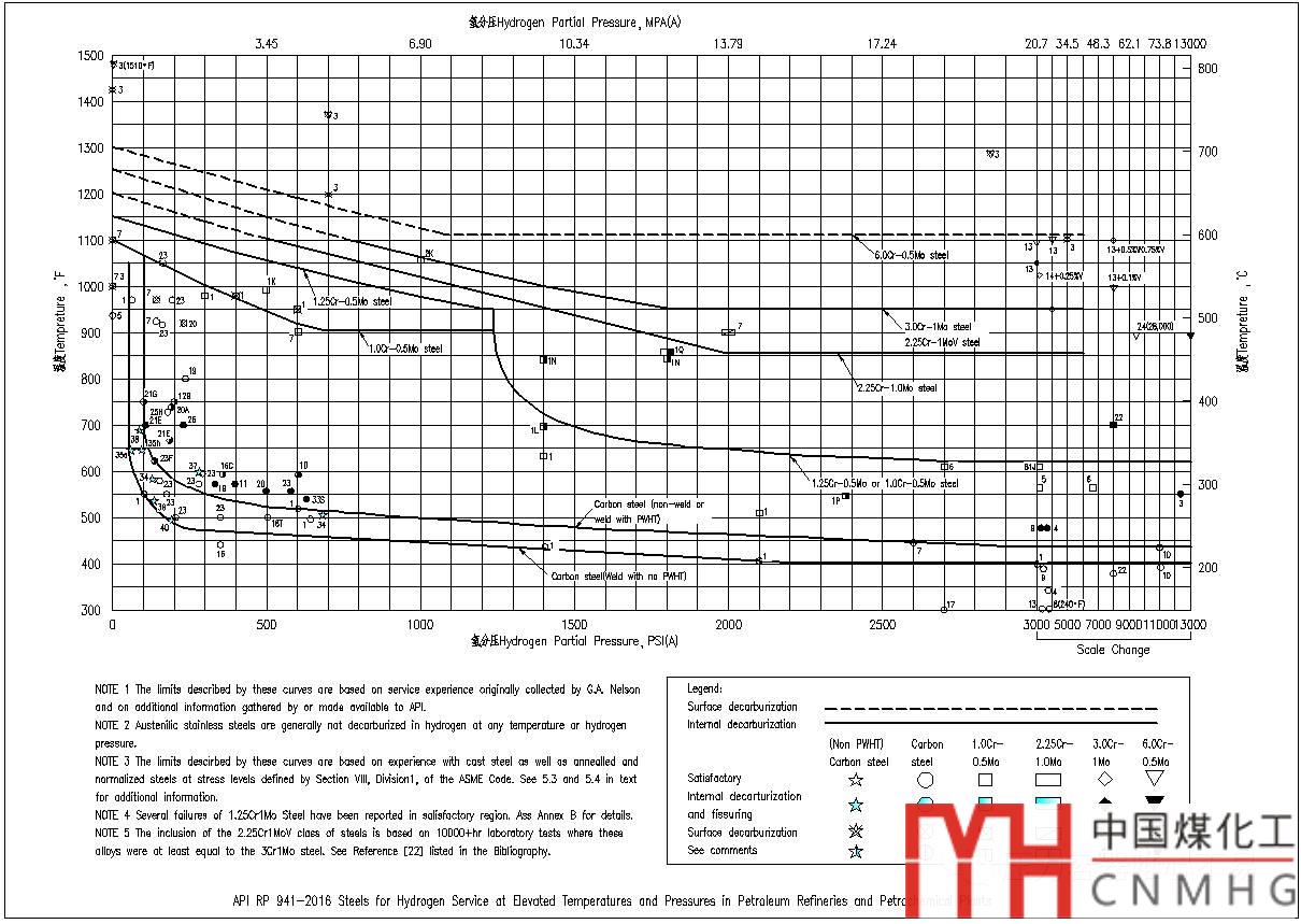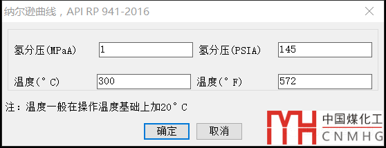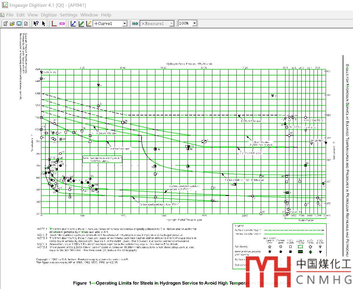 查納爾遜曲線比較繁瑣,現(xiàn)在VCAD重新按照最新版的《API RP 941-2016 Steels for Hydrogen Service at Elevated Temperatures and Pressures in Petroleum Refineries and Petrochemical Plants》制作了納爾遜曲線,并可以通過程序自動(dòng)查找。