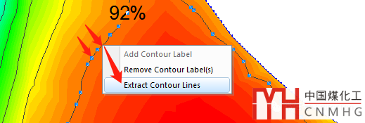 點(diǎn)擊等高線,再點(diǎn)擊一次等高線,在等高線句柄上右鍵,選擇“Extract Contour Lines”,將抽取的數(shù)據(jù)拖入繪圖,發(fā)現(xiàn)是跟等高線重合的(當(dāng)然了)。