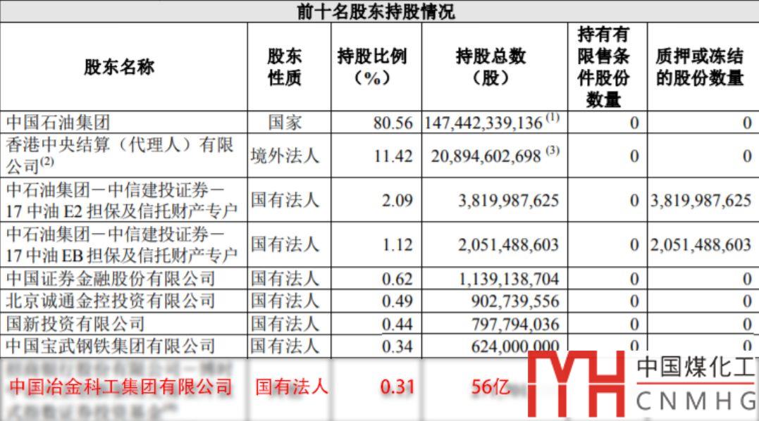 剛剛,中國(guó)石油發(fā)布公告,為加強(qiáng)中國(guó)石油集團(tuán)與中冶集團(tuán)戰(zhàn)略合作,拓寬合作領(lǐng)域,優(yōu)化公司股權(quán)結(jié)構(gòu),控股股東中國(guó)石油集團(tuán)擬通過(guò)無(wú)償劃轉(zhuǎn)方式將持有的中國(guó)石油股份公司5.6億股A股股份(占公司總股本的0.31%)劃轉(zhuǎn)給中冶集團(tuán)。5.6億股對(duì)應(yīng)32億的市值。