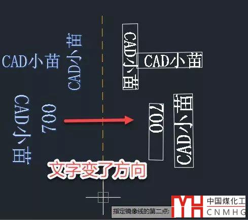 其實CAD在鏡像文字時并不是簡單的保持原文字的方向,而是判斷什么狀態(tài)下是可讀的,在豎直方向偏左和偏右兩種情況正好文字是反向的。