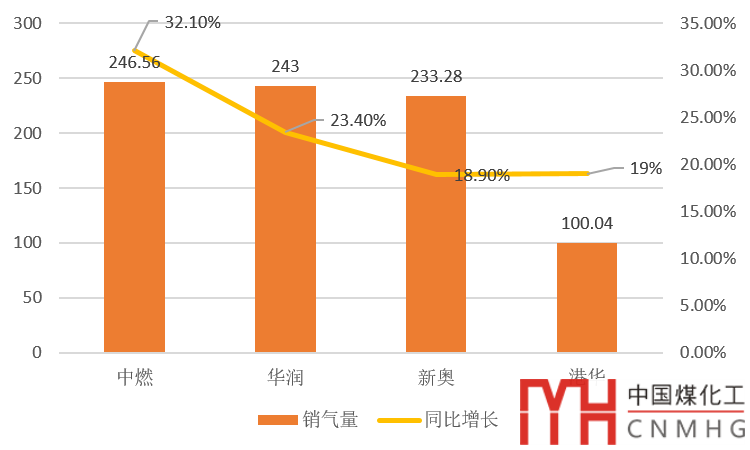 2019年6月21日,中國(guó)燃?xì)獍l(fā)布公告,中國(guó)燃?xì)?/span>2018年度銷氣量達(dá)到246.56億方,同比增長(zhǎng)32.1%,一舉超越華潤(rùn)燃?xì)?/span>2018年度242.3億方,成為四大城燃集團(tuán)業(yè)績(jī)榜首。