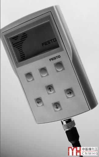 FB33最上邊的插座(圖中標(biāo)號4)是用來連接Festo的專用手持設(shè)備的(CPX-MMI)。專用手持設(shè)備可以用來對模塊進(jìn)行參數(shù)配置并能提供很好的診斷功能,可以很直觀的看到模塊的狀態(tài)和一些錯誤信息。CPX-MMI的外觀如下圖: