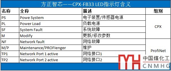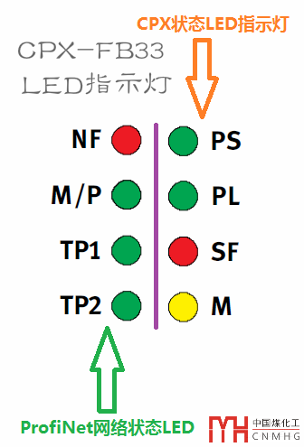 LED指示燈分為左右兩排,其中右邊是CPX的狀態(tài)指示燈,左邊是ProfiNet網(wǎng)絡(luò)的狀態(tài)指示燈,如下圖: