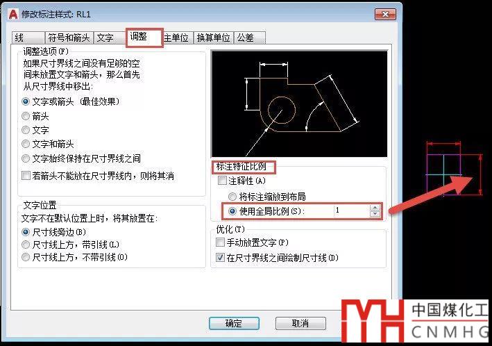 輸入D,回車,打開標(biāo)注樣式管理器,將此標(biāo)注樣式的特征比例修改成1,就可以了。如下圖所示。