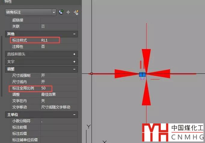 可以看到進(jìn)入塊編輯后,標(biāo)注的顯示跟炸開后效果是一樣的,標(biāo)注樣式是RL1,標(biāo)注全局比例(特征比例)的設(shè)置是50。