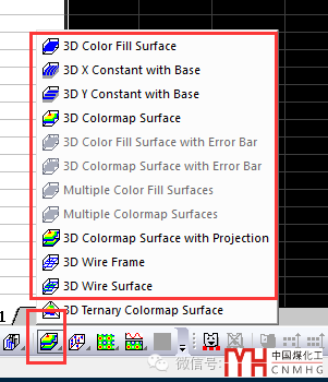 XYY類型的數(shù)據(jù)也可以繪制其他類型的3D圖,如3D Surface等,但需要轉(zhuǎn)換成虛擬矩陣(Virtual Matrix)
