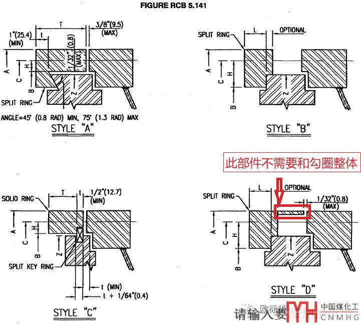 GB/T 151的A型或TEMA的B型由于卡進管板較少(無論是直徑方向還是厚度方向),且鉤圈是分片的擰緊螺栓的過程中很容易側(cè)翻。所以要設(shè)置個類似TEMA的D型的結(jié)構(gòu)。但要注意要保證小定距短節(jié)有足夠的剛度,以及確實能起到定距頂住鉤圈不側(cè)翻的作用(注意控制間隙)。