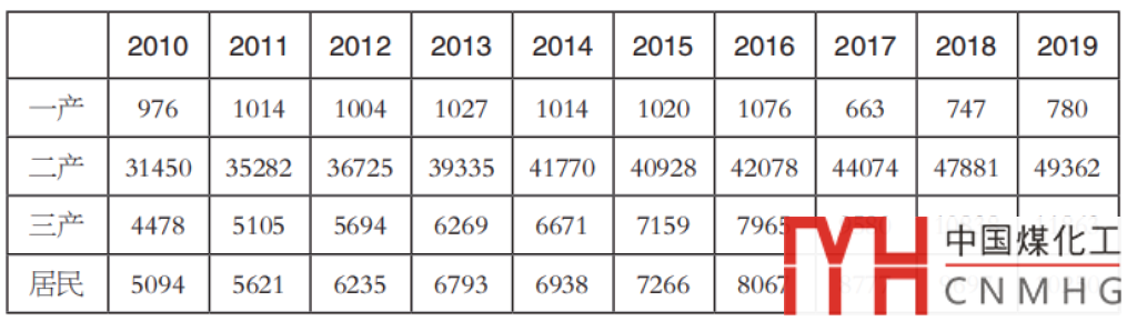 表5-4 2010~2019年分產(chǎn)業(yè)用電量