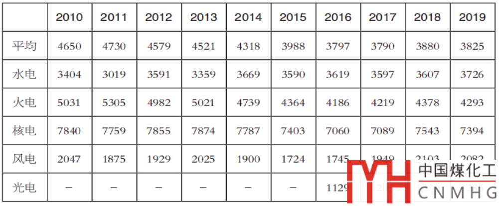 表5-5 2010~2019年發(fā)電設(shè)備利用小時(shí)數(shù)
