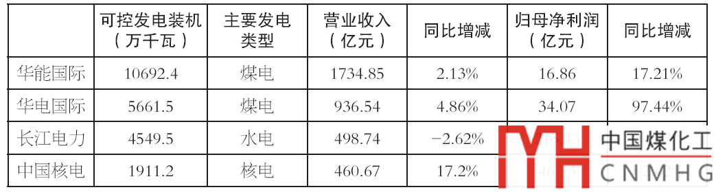 2019年,從多個(gè)中央發(fā)電企業(yè)的主要經(jīng)營指標(biāo)看,發(fā)電行業(yè)企業(yè)經(jīng)營總體穩(wěn)步增長。其中,中國華能營業(yè)收入同比增長8.7%;中國華電全年實(shí)現(xiàn)銷售收入同比增長9.4%,利潤總額同比增長37.1%;國家電投營業(yè)收入同比增長20.4%,利潤同比增長49.2%,凈利潤同比增長59.6%;國家能源集團(tuán)營業(yè)收入同比增長3.4%,利潤總額同比增長6.3%;中核集團(tuán)營業(yè)收入同比增長17.16%,利潤同比增長9.12%。