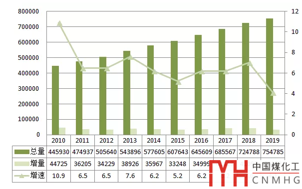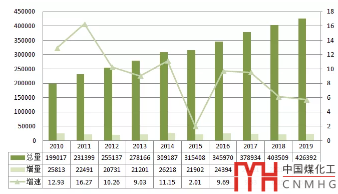 圖5-2 2010~2019年全國電力裝機(jī)及增速情況(單位:萬千瓦,%)(本圖有誤,需正確數(shù)據(jù)請留言)