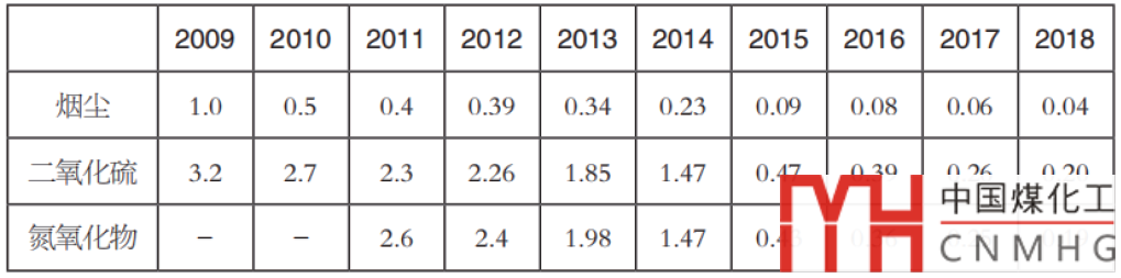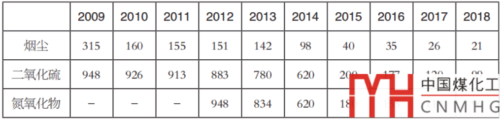 表5-7 2009~2018年電力行業(yè)排放總量情況
