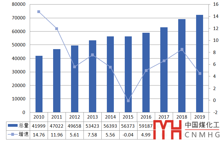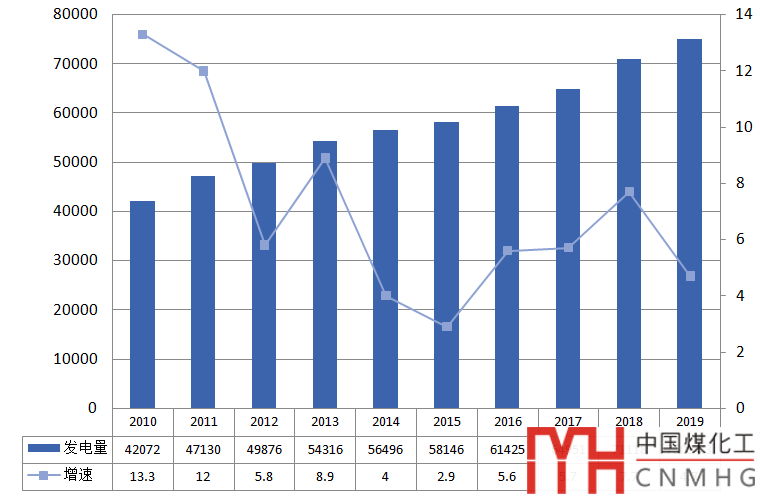 圖5-1 2010~2019年全國發(fā)電量及增速情況(單位:億千瓦時(shí),%)