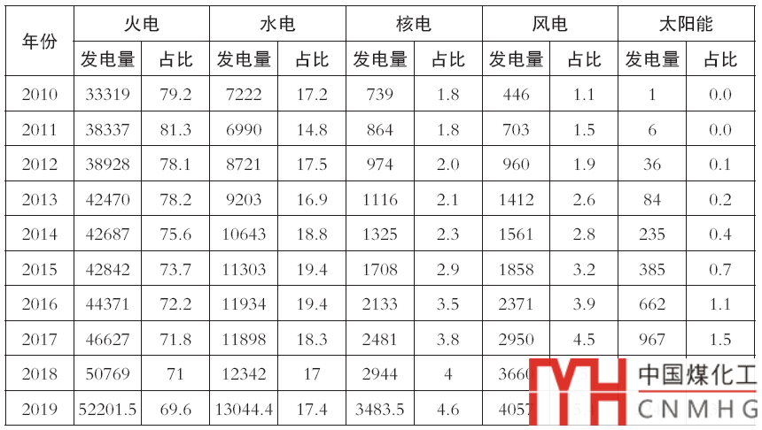 表5-1 2009~2019年全國發(fā)電量總量構(gòu)成