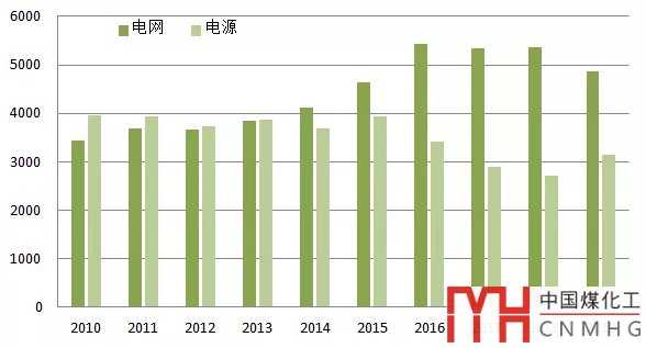 從近十年數(shù)據(jù)來看,2012年電力投資7393億元為近十年最低,2016年8839億元為近十年最高,之后逐步回落。